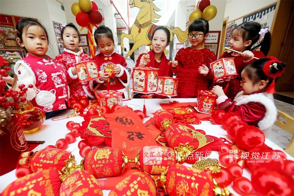 2月10日,连云港市钟声协调长儿园小伴侣们身穿保守服饰参取过小年送新春勾当。曹永祥摄 视觉江苏网供图