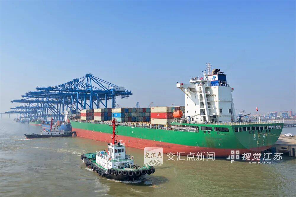 跟着南通港通海口岸至营口航路大型集拆箱船 “弘泰 829” 轮正在通海集拆箱船埠靠泊,谈俊摄 视觉江苏网供图
