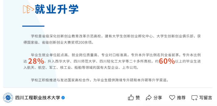 学校的登科分数线年高考登科中,贵州物理类电气工程最低登科分为487。职业本科大学跟平易近办本科一样,根基上就是方才过本科线或者过线几十分的程度,结业生有60%以上都正在航空、航天、军工、核工业、船舶等范畴的国有大型企业和上市公司就业!
